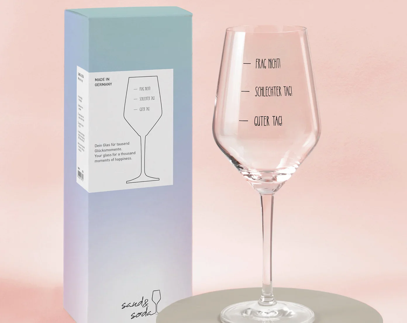 Our world is fast-moving and sometimes we just rush through time. That makes it all the more important to create special moments to relax, dream and laugh. Sand & Soda is the perfect companion that will give you and your loved ones moments of happiness! With our contemporary sayings and lovingly designed motifs, we remind you of the beautiful things in life in every situation. Whether alone or with your favorite people – a delicious cocktail or a good wine, paired with a Sand & Soda glass, simply exudes “good vibes”! Dream yourself away! To places full of carefreeness and relaxation. Think of wonderful evenings with friends, full of security and lightness. Surround yourself with positive thoughts that give you energy. Cross out negative concerns. Go through life with a broad smile.