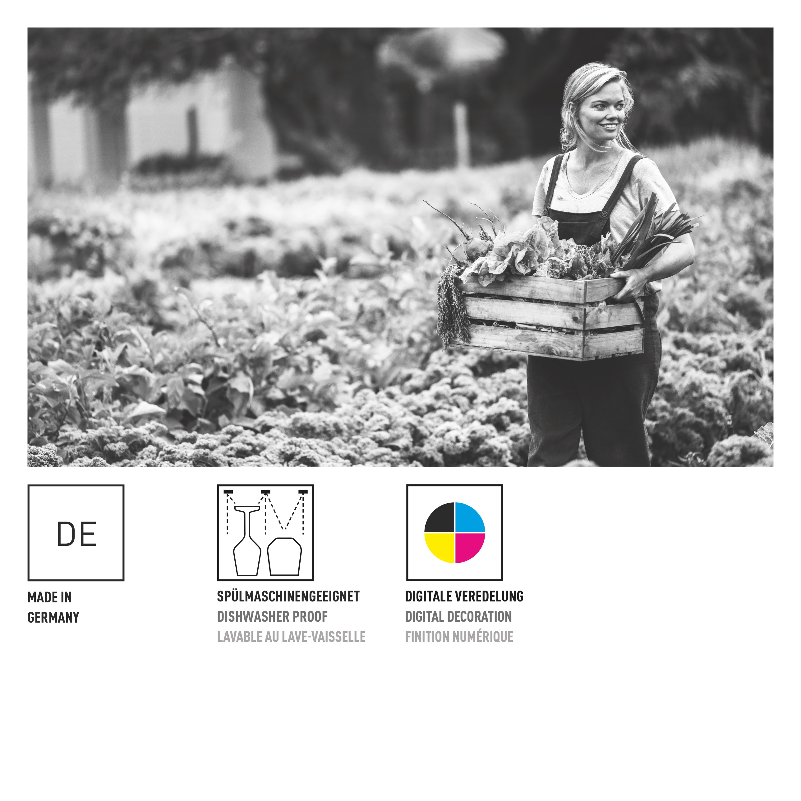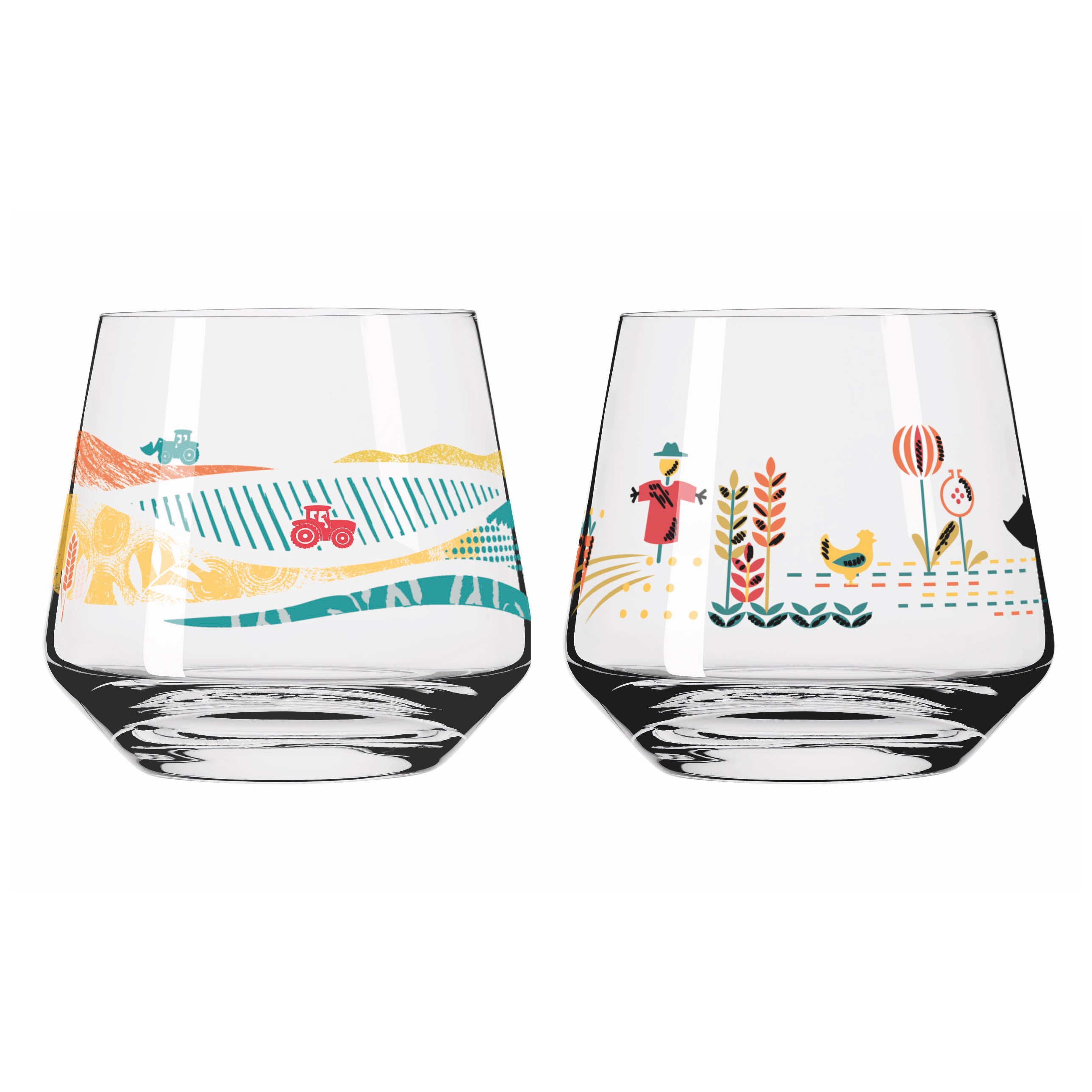 This drinking glass combines nature and agriculture – with gently rolling fields, golden ears of wheat, and a tractor that blends harmoniously into the landscape. A calm, warm motif that captures the beauty of rural life.