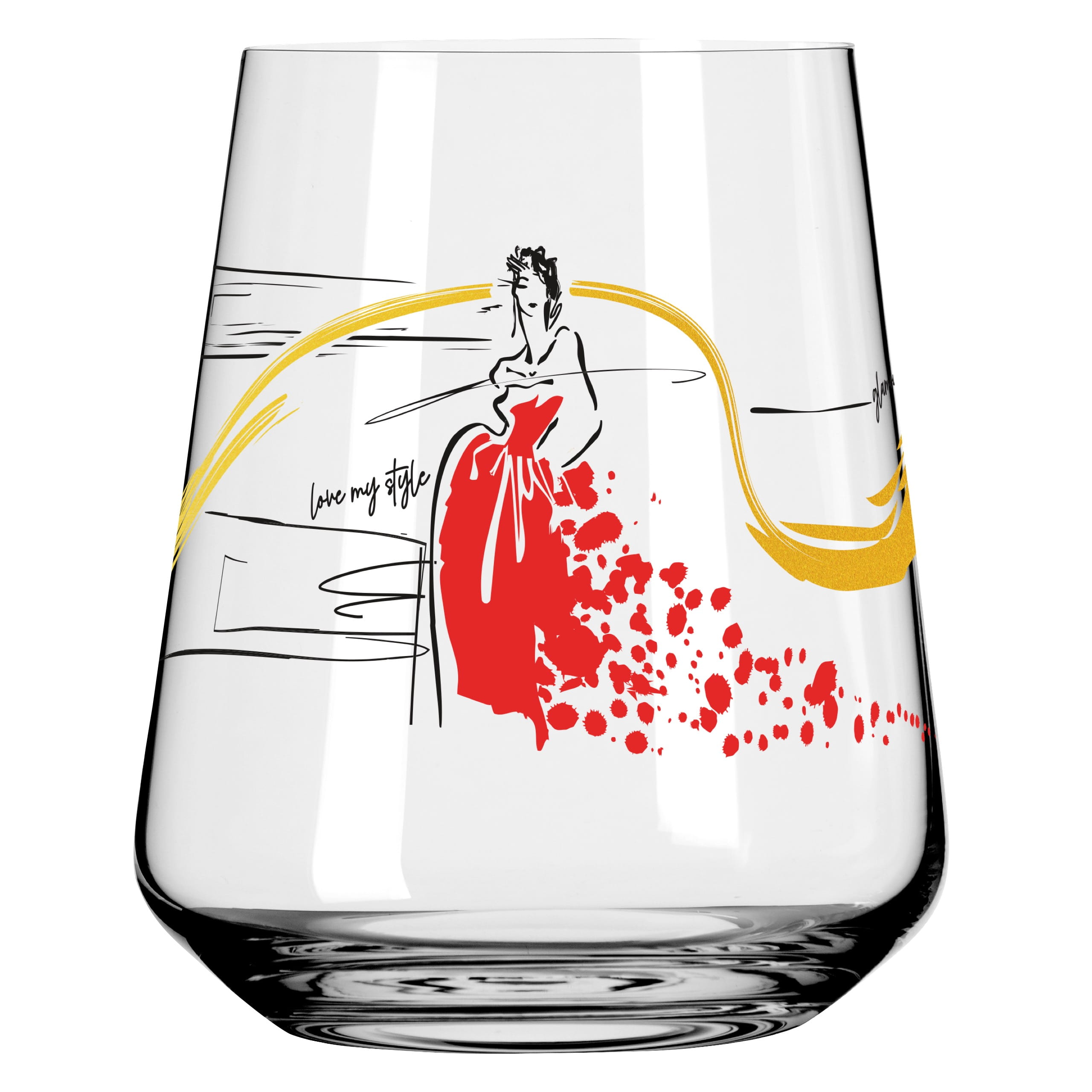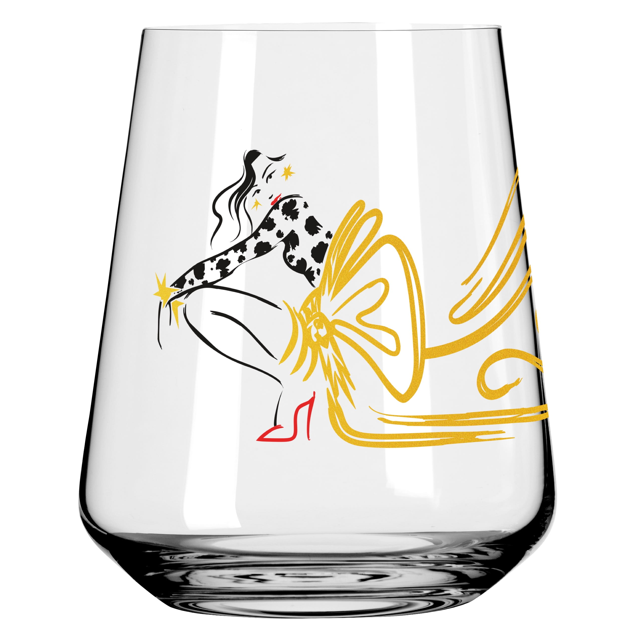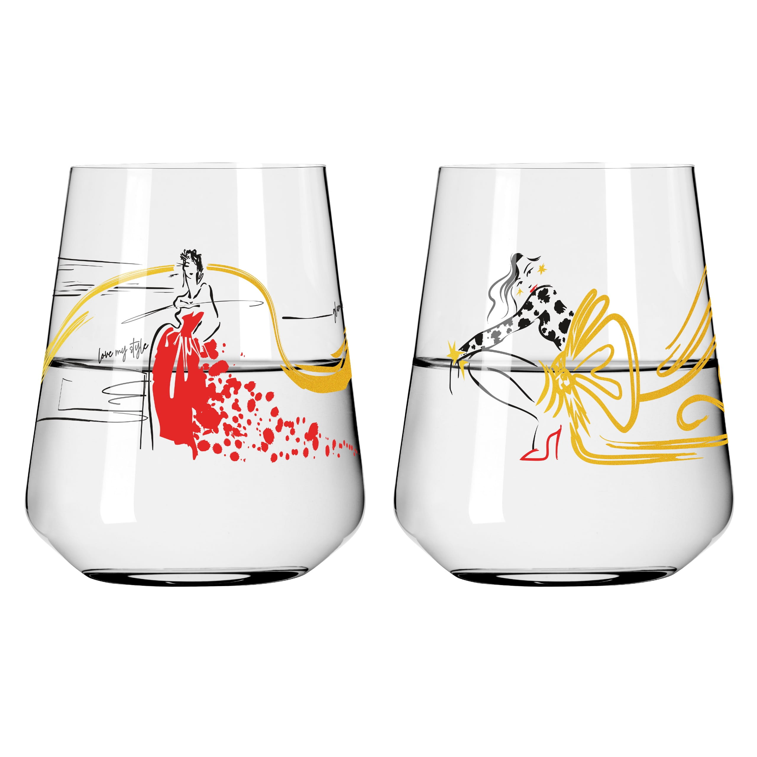 Elegance, glamour, and a touch of extravagance come together in these drinking glasses. Stylish figures meet golden lines in a couture look – a must-have for fashionistas with taste.