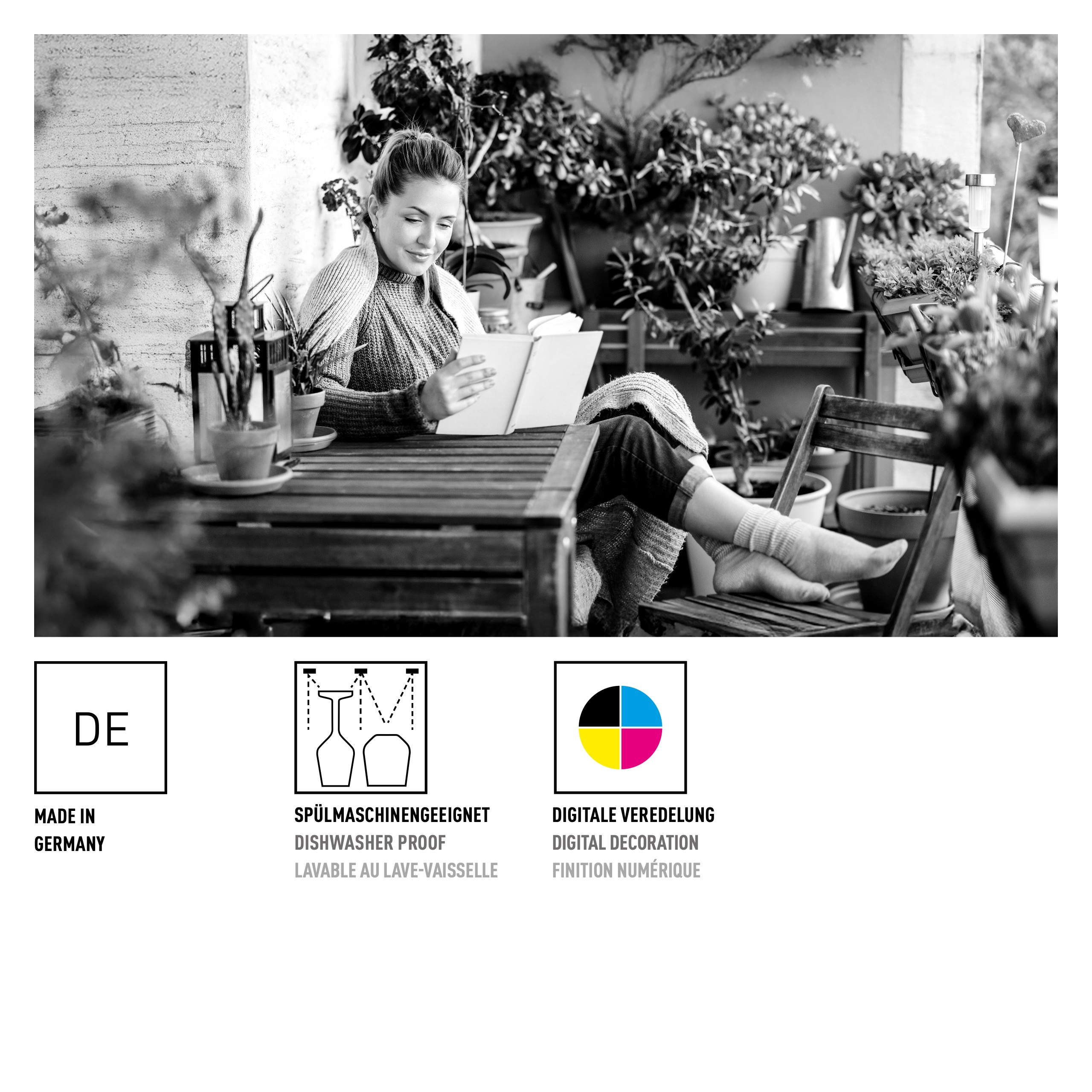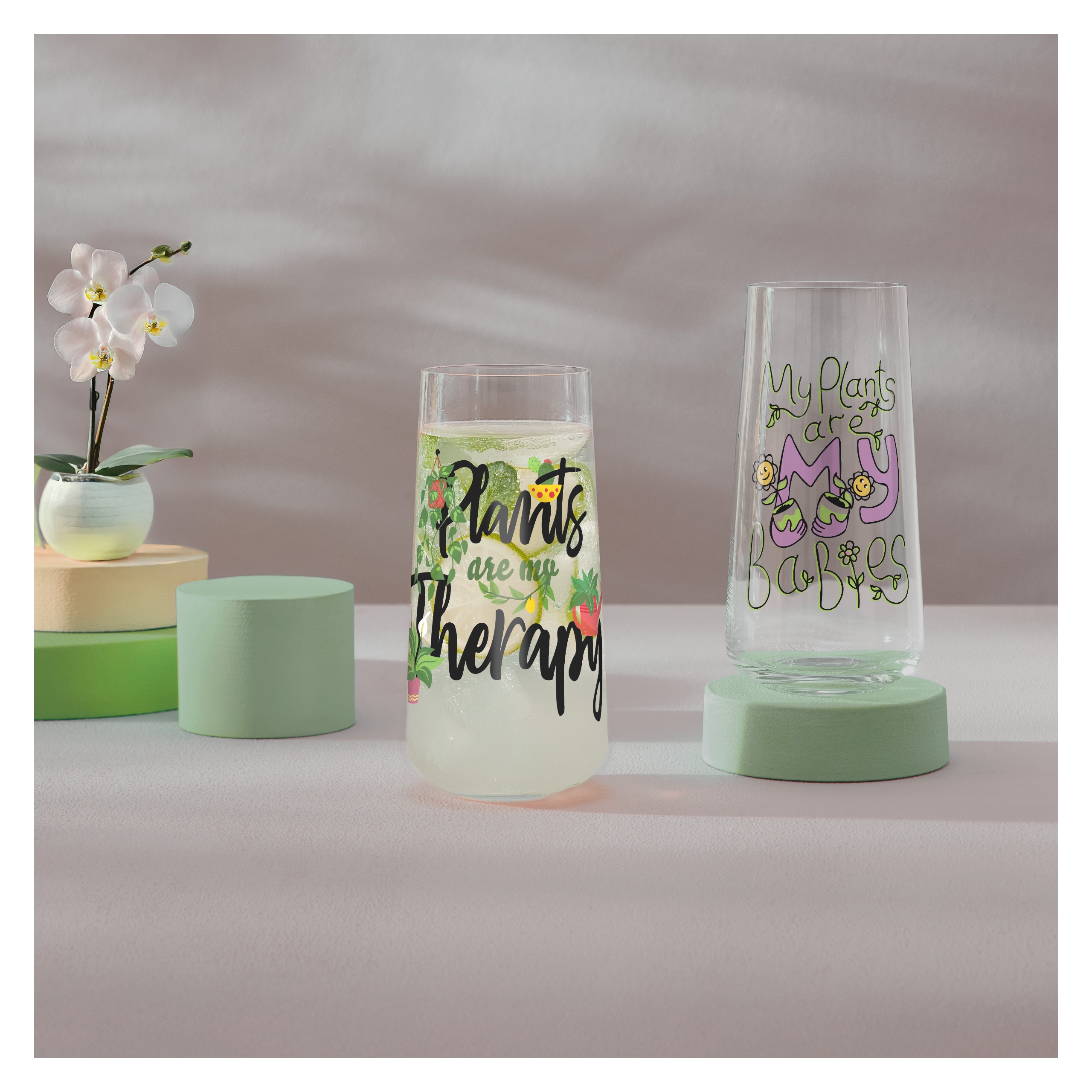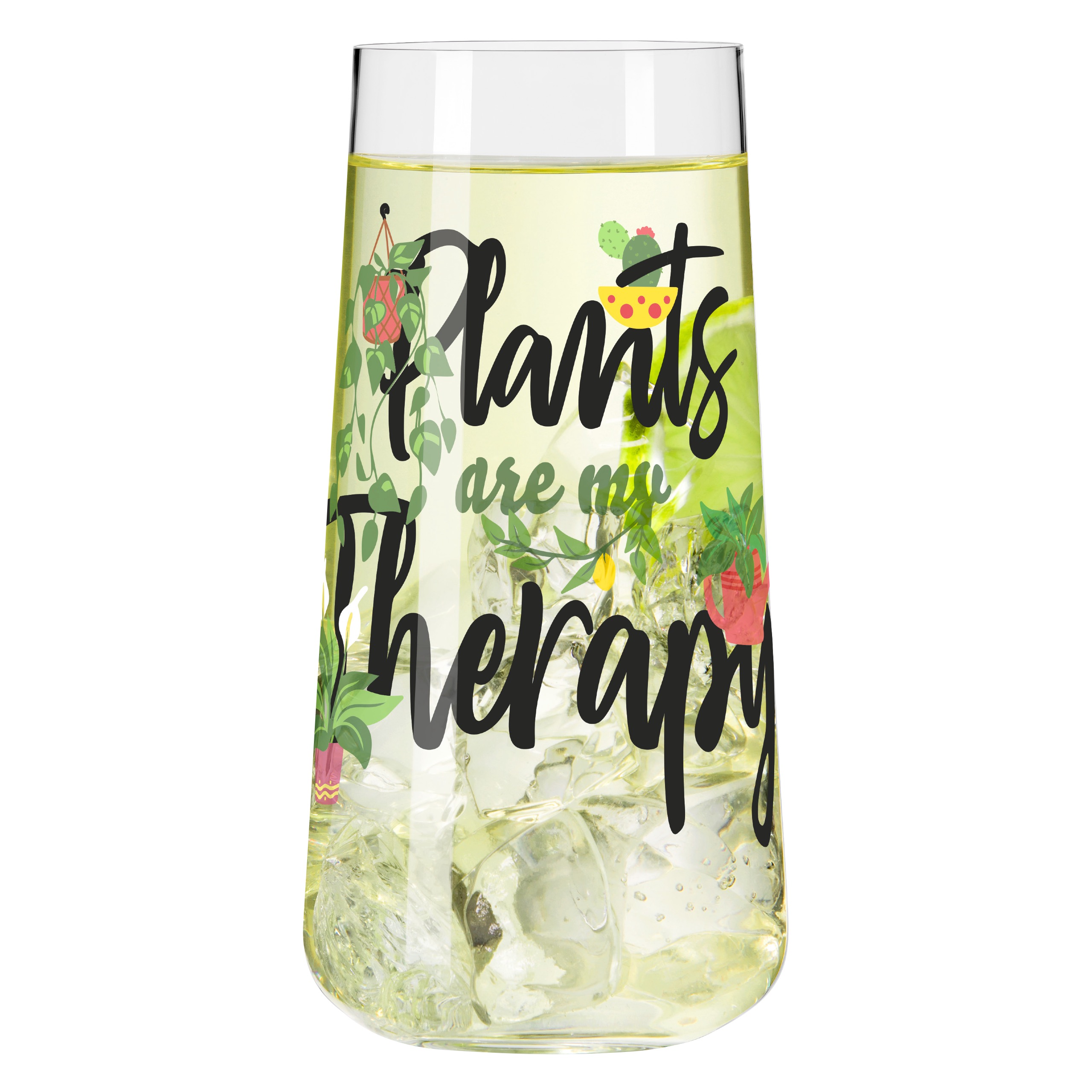 It doesn't get any greener: this lovingly designed glass is a tribute to all plant lovers. With the cheerful quote "Plants are my Therapy" and playful illustrations, it brings calm, color, and good vibes to any table.