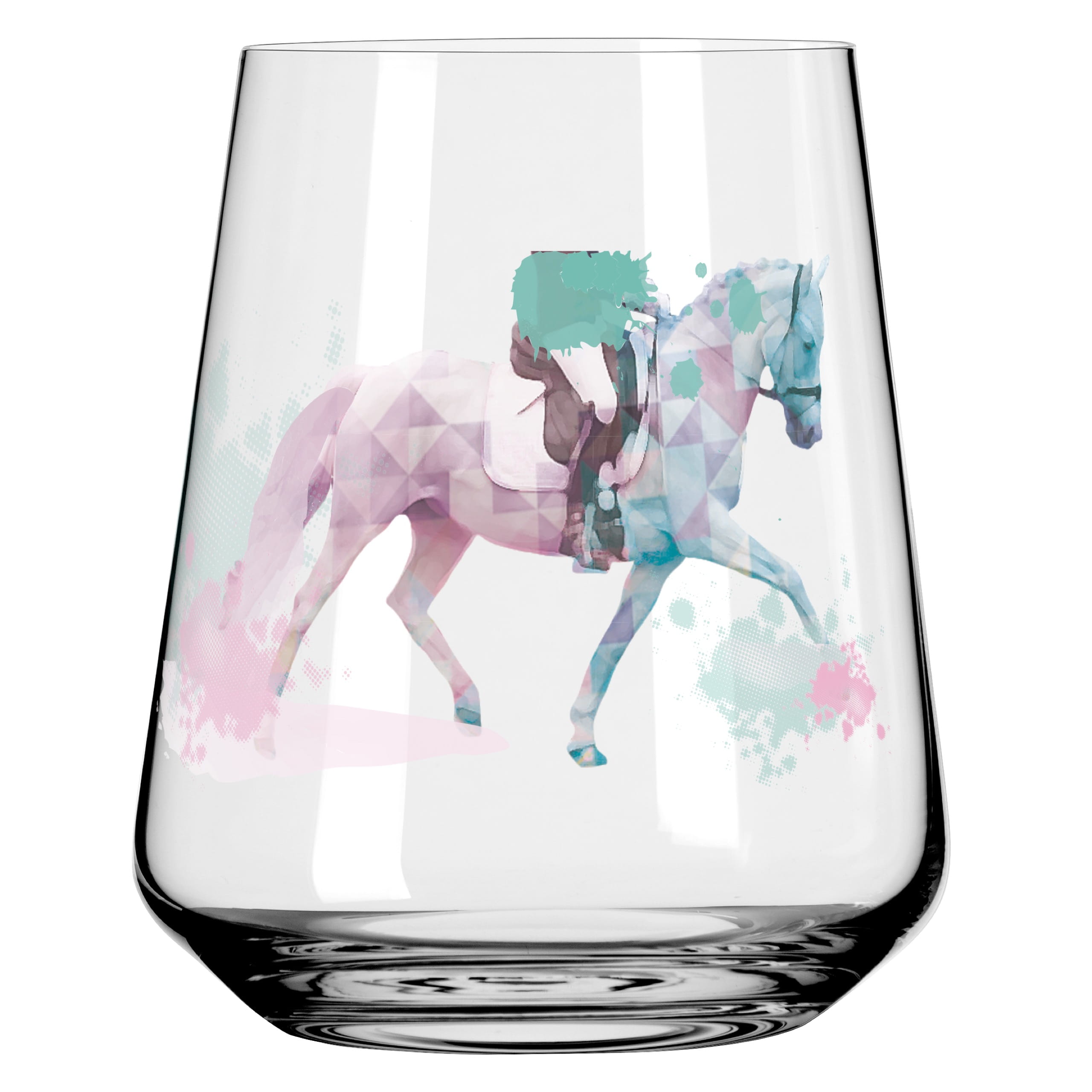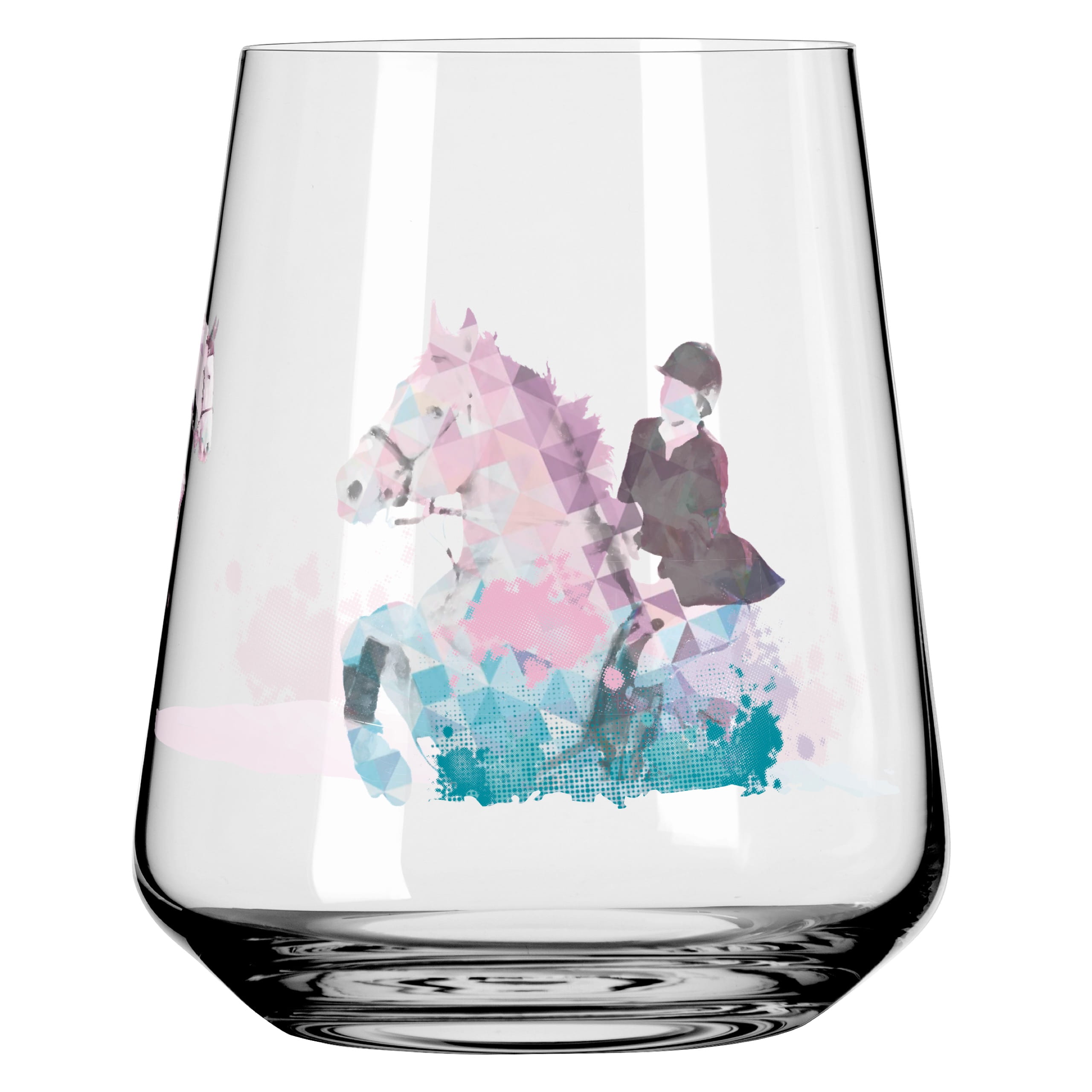 The glasses depict horse and rider in perfect harmony – light, powerful, and full of elegance. The flowing colors artfully capture motion and emotion. For all who love horseback riding and seek the extraordinary in the everyday.