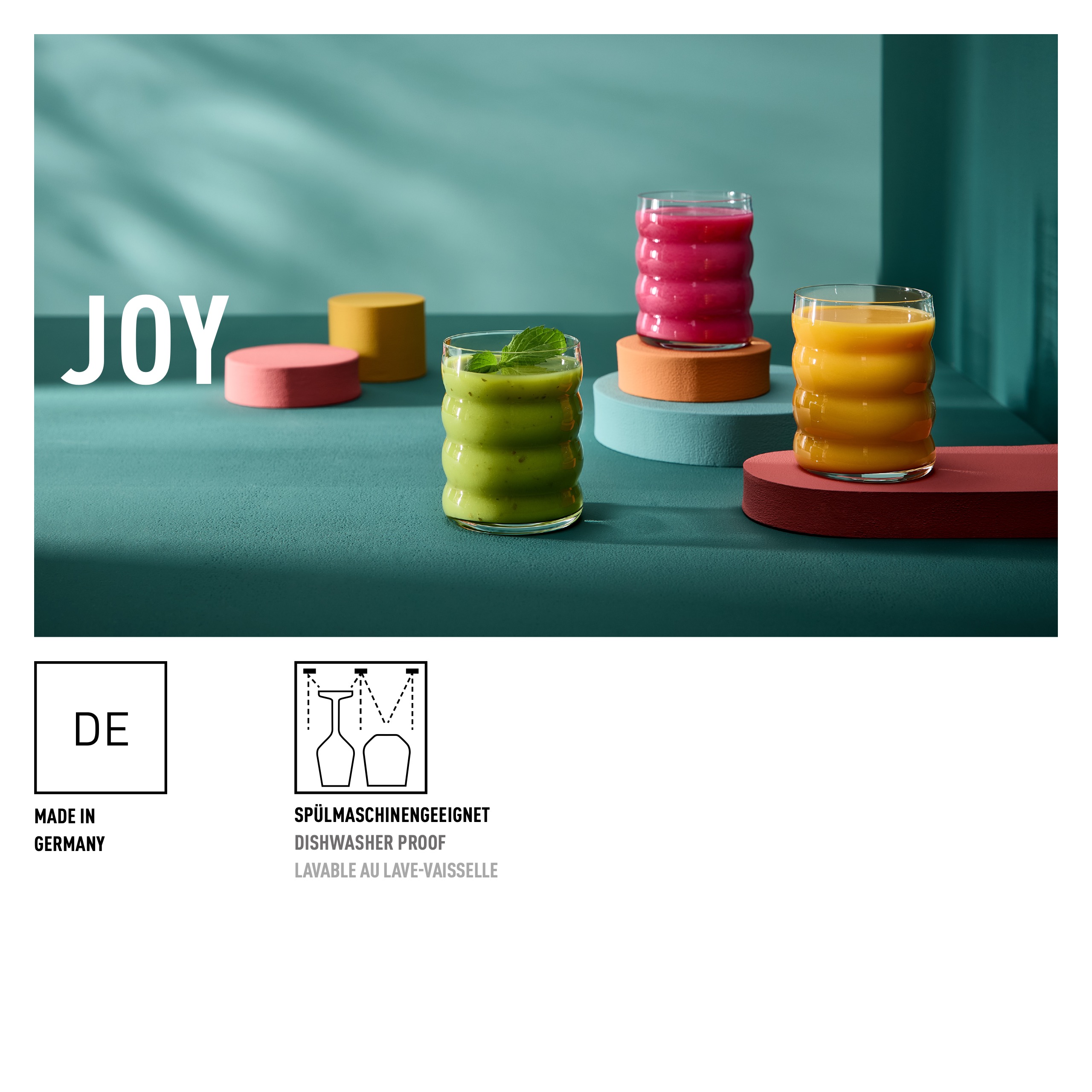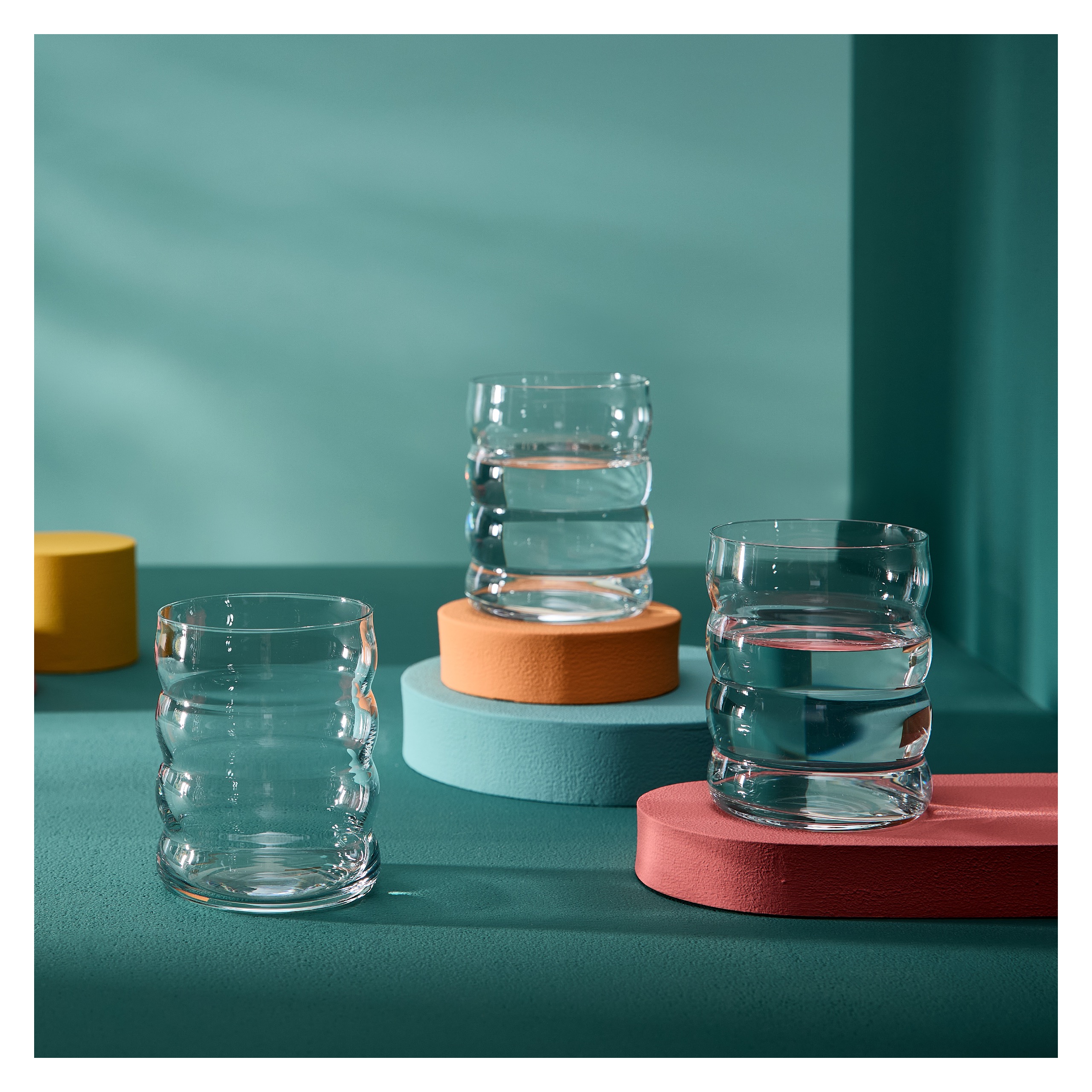 This drinking glass set impresses with its calm, uniform design and subtle wave texture that adds depth and character to the glass. The clean lines create a look that is both modern and timeless, making these glasses versatile companions for everyday use.