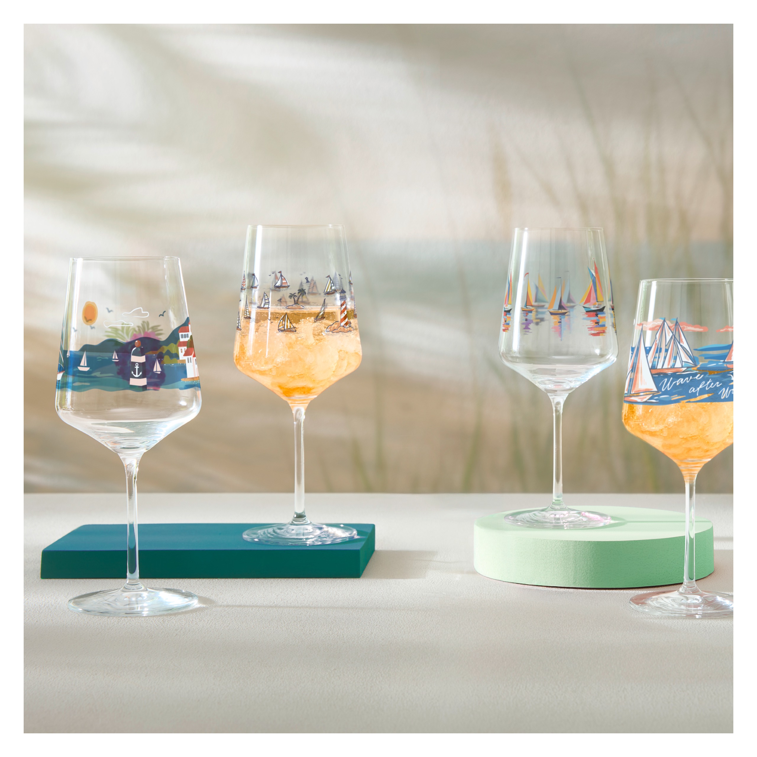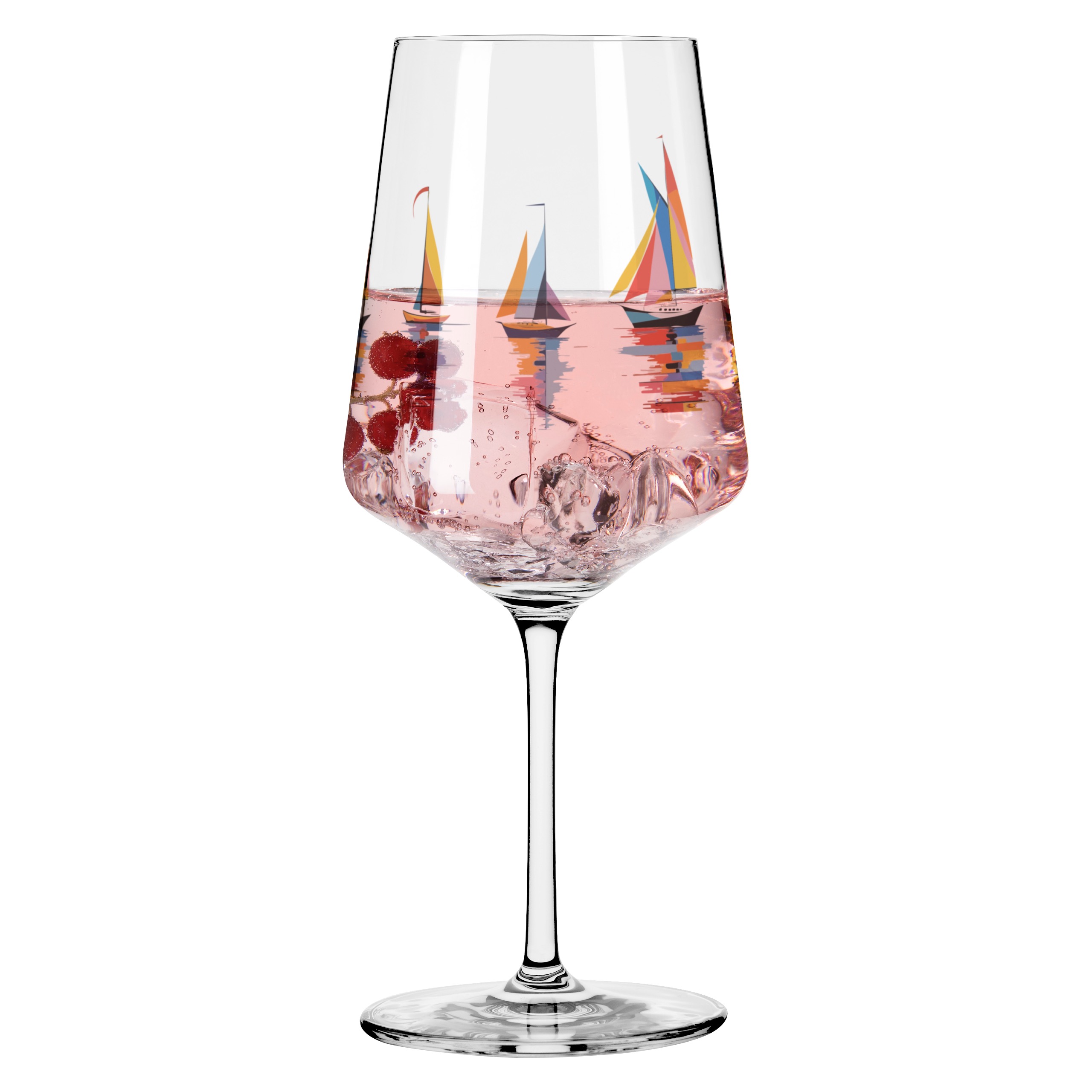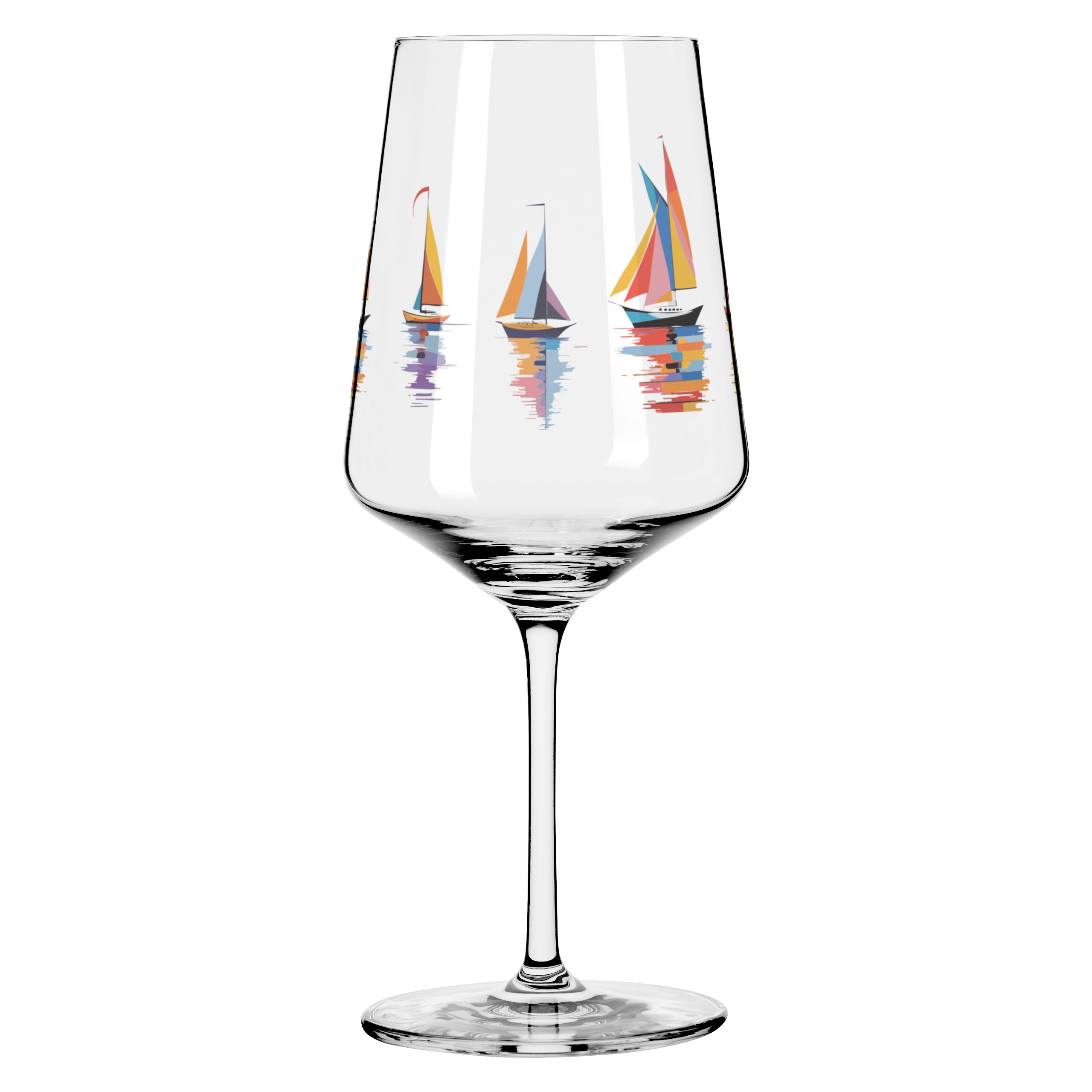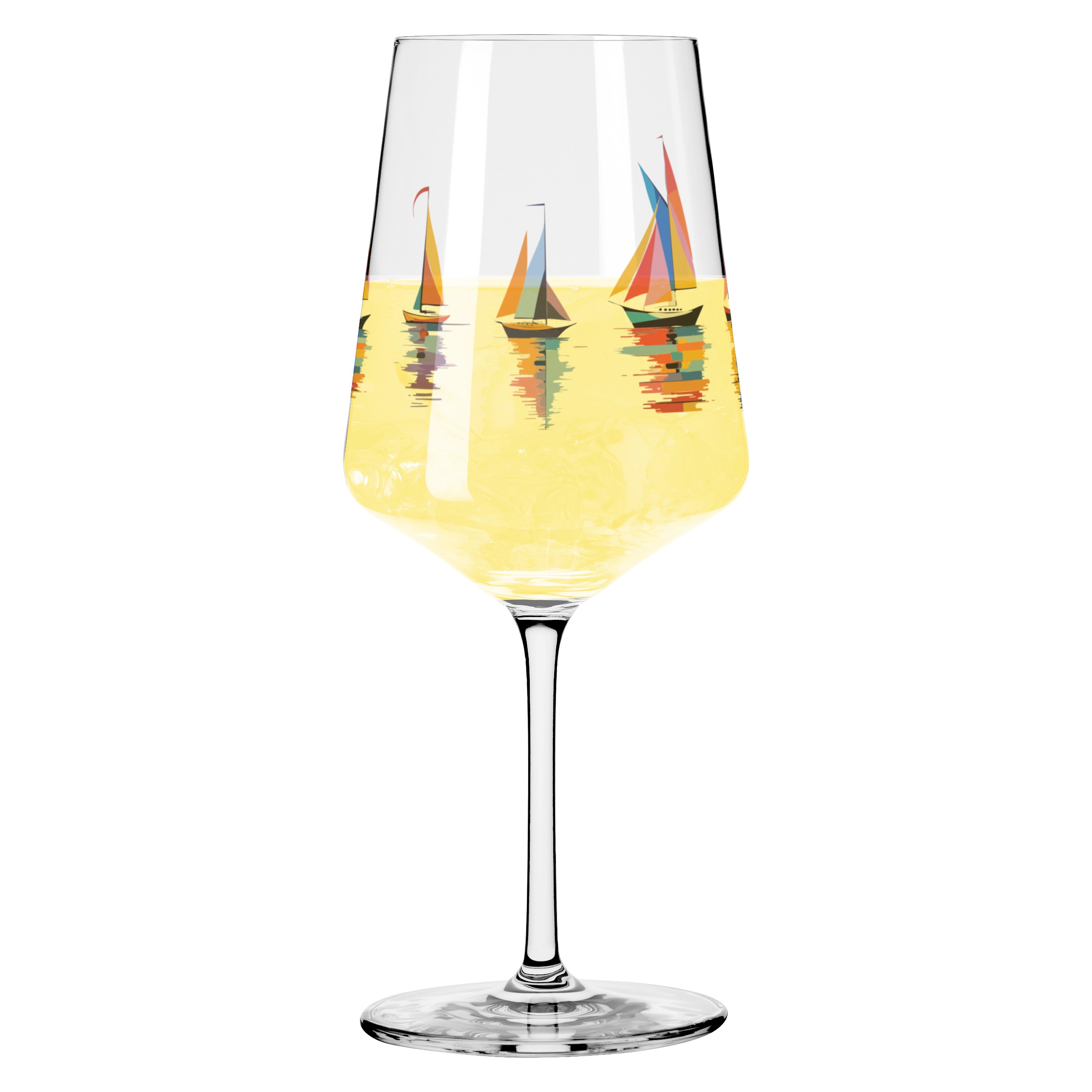 This drinking glass puts wind in your sails and color in your life: colorful sailboats reflect on the water, turning your glass into a real eye-catcher. Light, fresh, and full of color – for all who love the sea and something special.