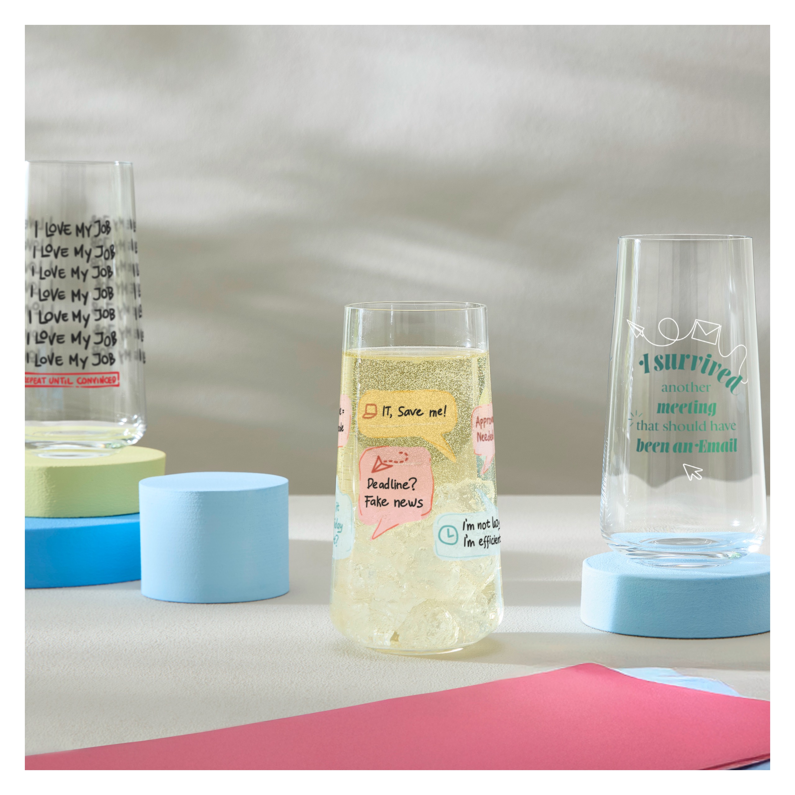 These speech bubbles speak straight from the heart – colorful, direct, and delightfully honest. Whether you're in the home office, open-plan workspace, or stuck in a Monday meeting: this glass is your silent supporter in the office jungle.