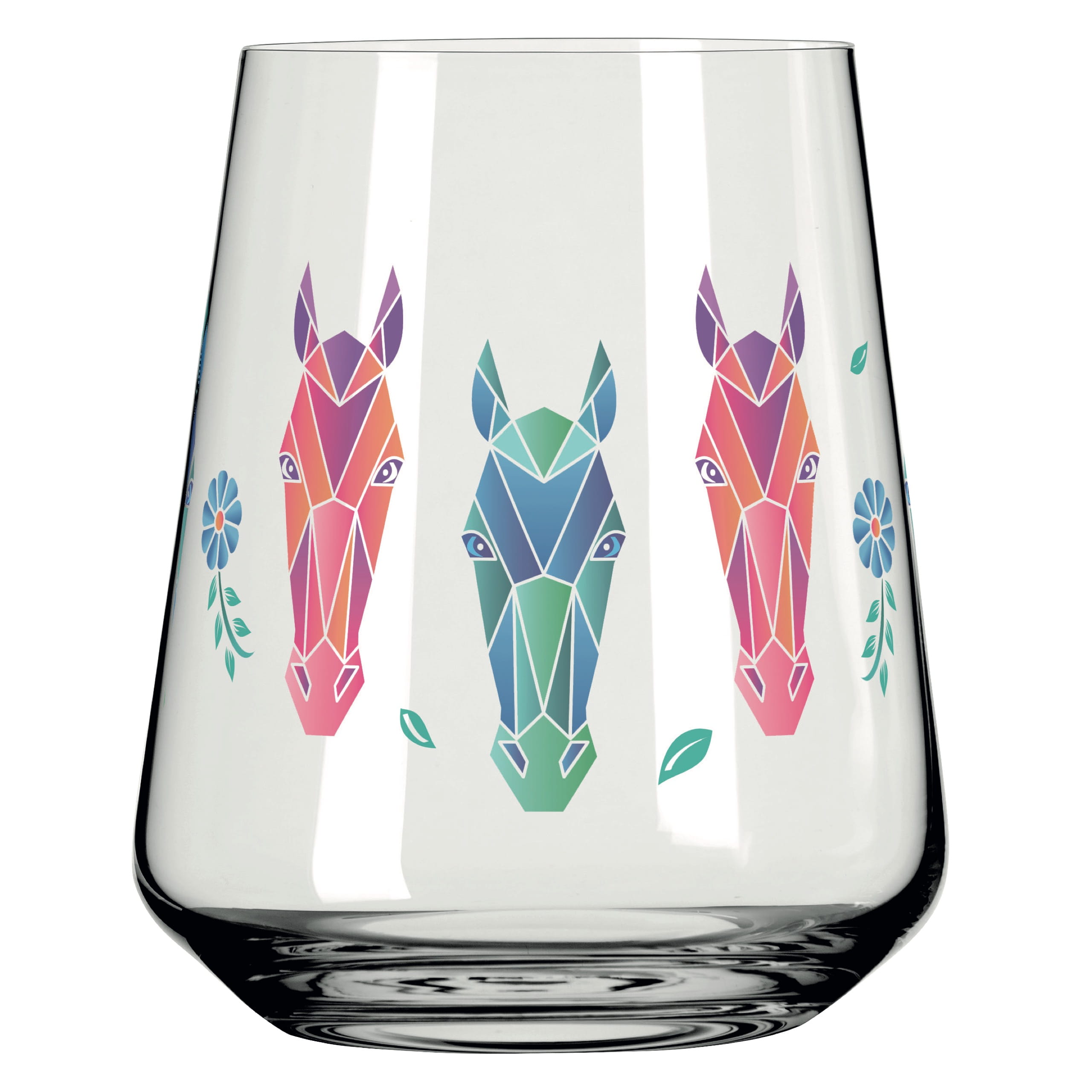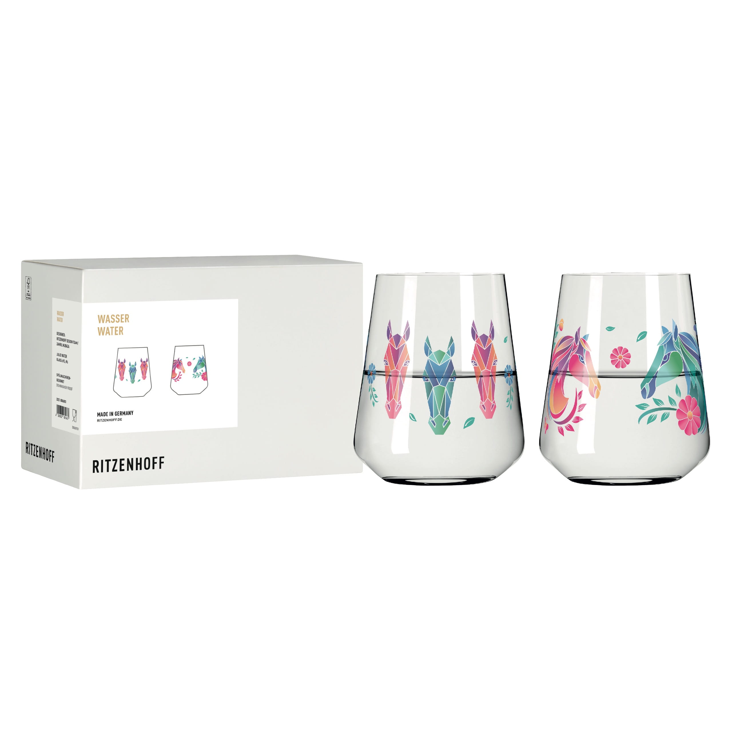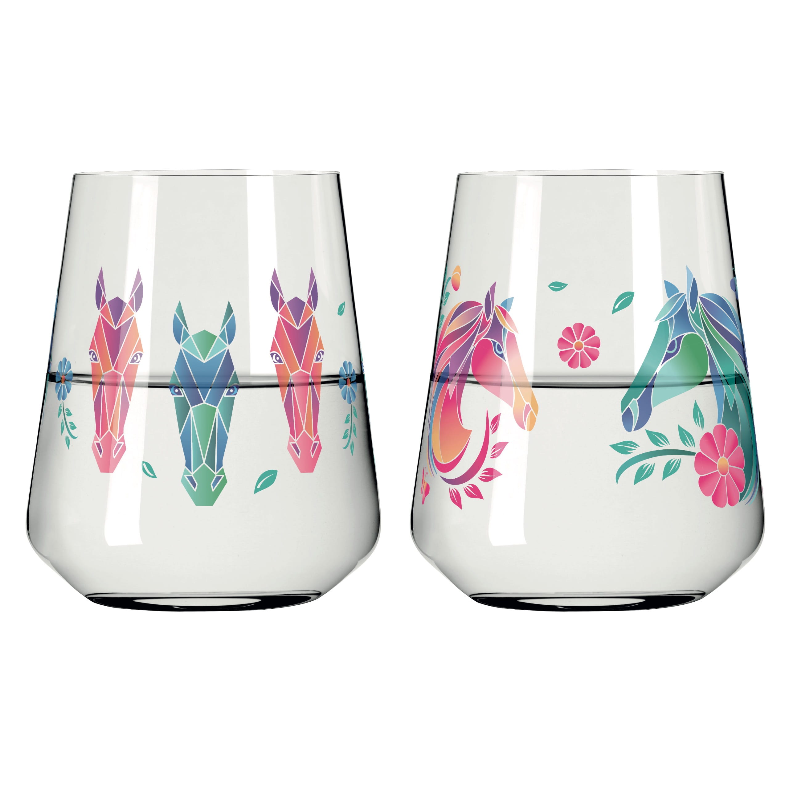 Ensemble, ces deux verres forment un duo fascinant. Ils sont bien plus que de simples contenants pour une eau rafraîchissante ; ce sont des œuvres d’art qui racontent des histoires et célèbrent de manière unique le lien entre l’homme et l’animal. Dans ce style graphique, la beauté et la force des chevaux sont présentées sous un nouveau jour, à la fois attrayant et inspirant.