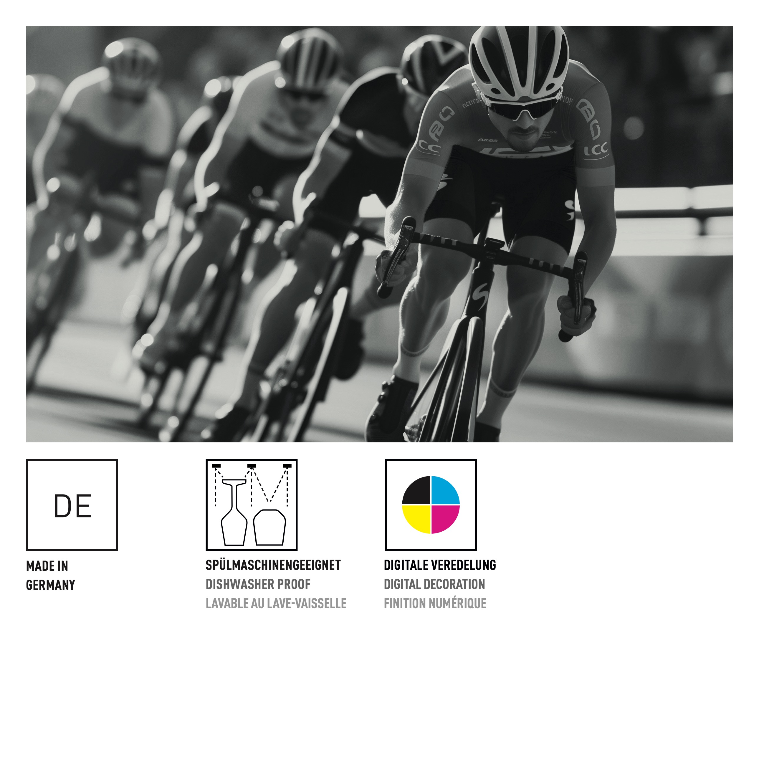 Ce verre capture l'esprit de chaque sortie à vélo : léger, libre et plein d'énergie. Son décor rafraîchissant en fait le compagnon idéal pour tous ceux qui aiment être en mouvement.