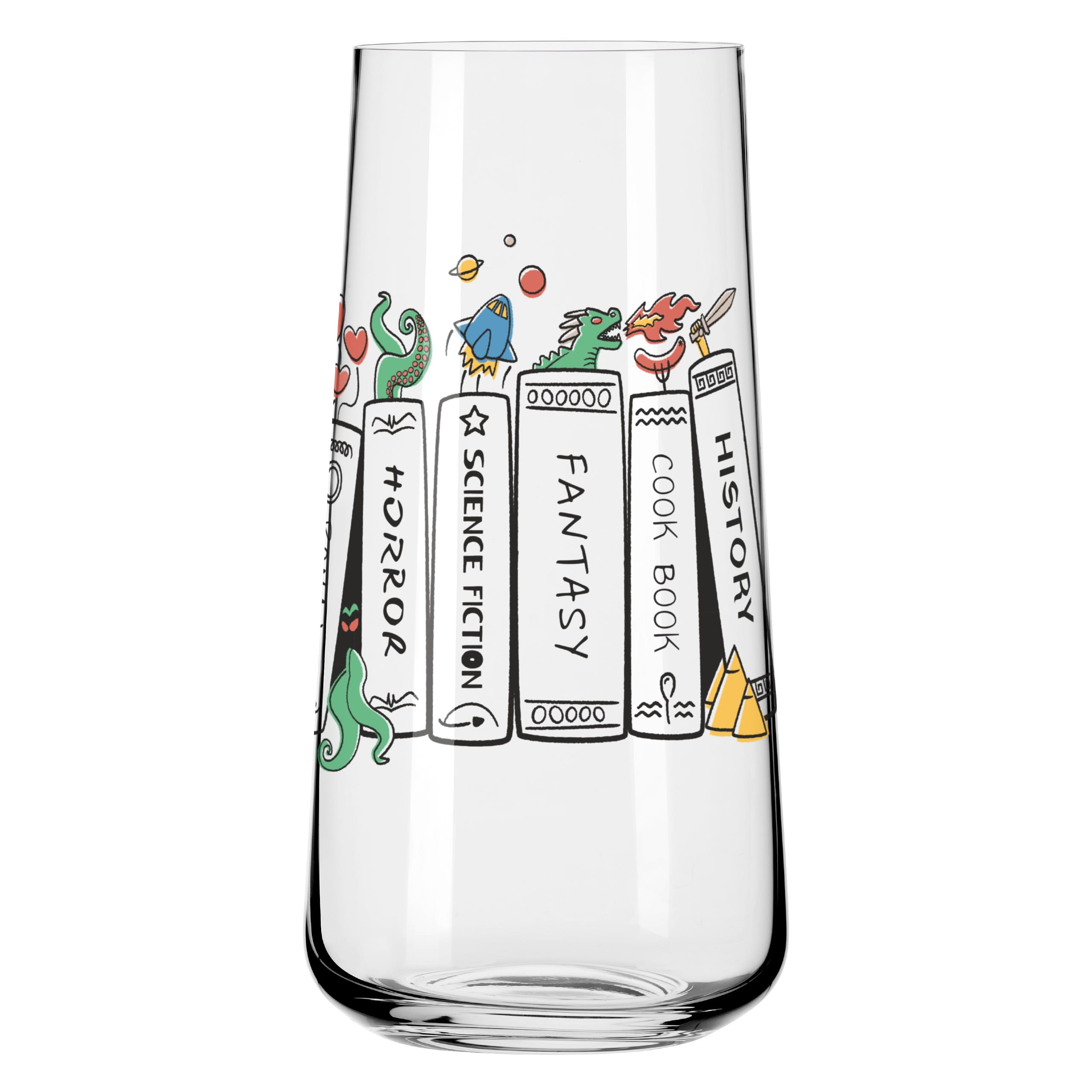 Des battements de cœur aux frissons, des galaxies lointaines aux profondeurs de l’histoire – ce verre réunit tout l’univers de la littérature dans une bibliothèque haute en couleur. Avec des illustrations riches en détails, il célèbre la diversité de la lecture avec une touche d’humour. Un véritable coup de cœur pour tous ceux qui naviguent entre les genres et ne se lassent jamais des histoires.