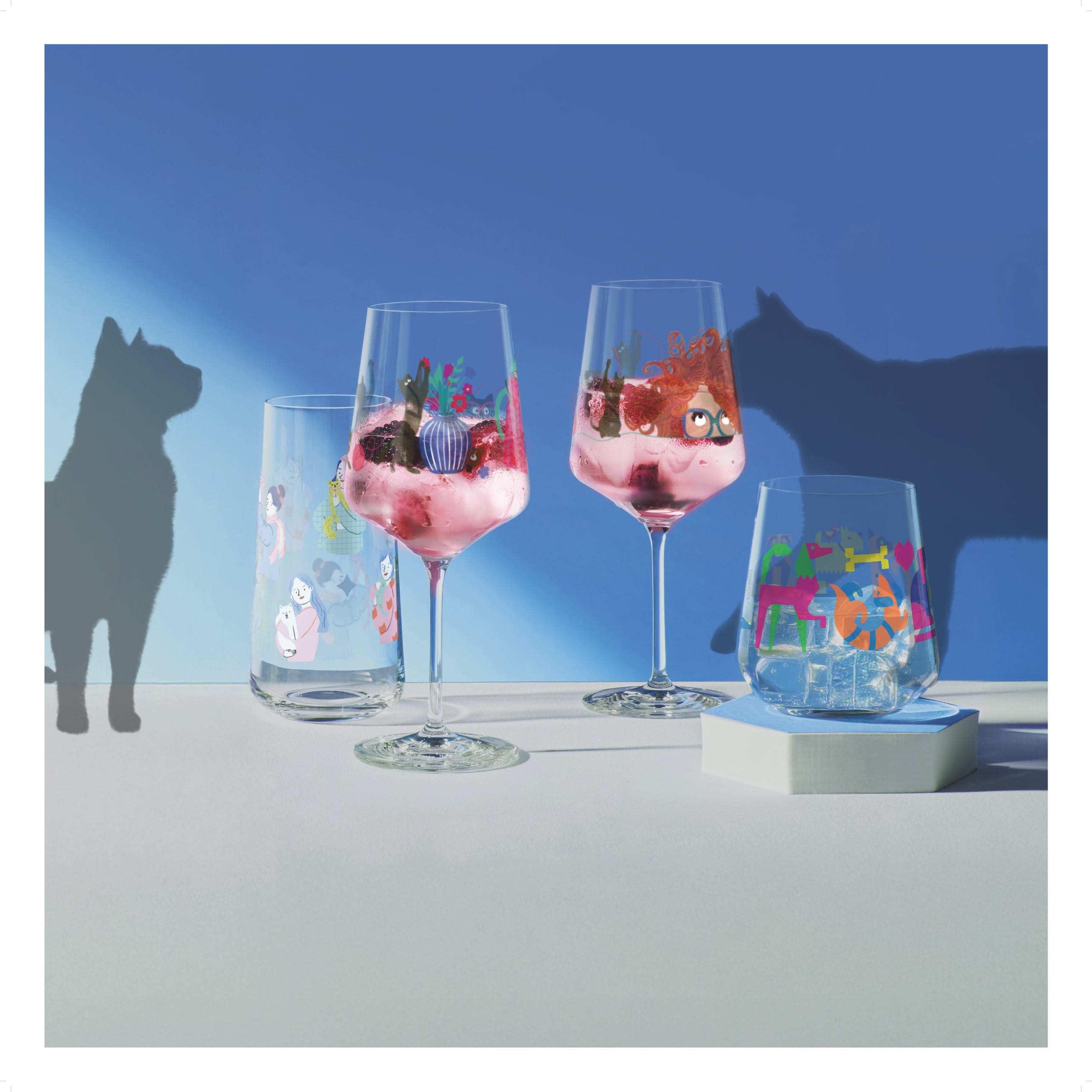 Les élégants verres sont ornés de motifs ludiques de chats – un design qui reflète le lien étroit et le bien-être partagé. Grâce à leur forme bien pensée, les arômes de tes cocktails se déploient parfaitement, transformant chaque boisson en un moment de dégustation élégant.
