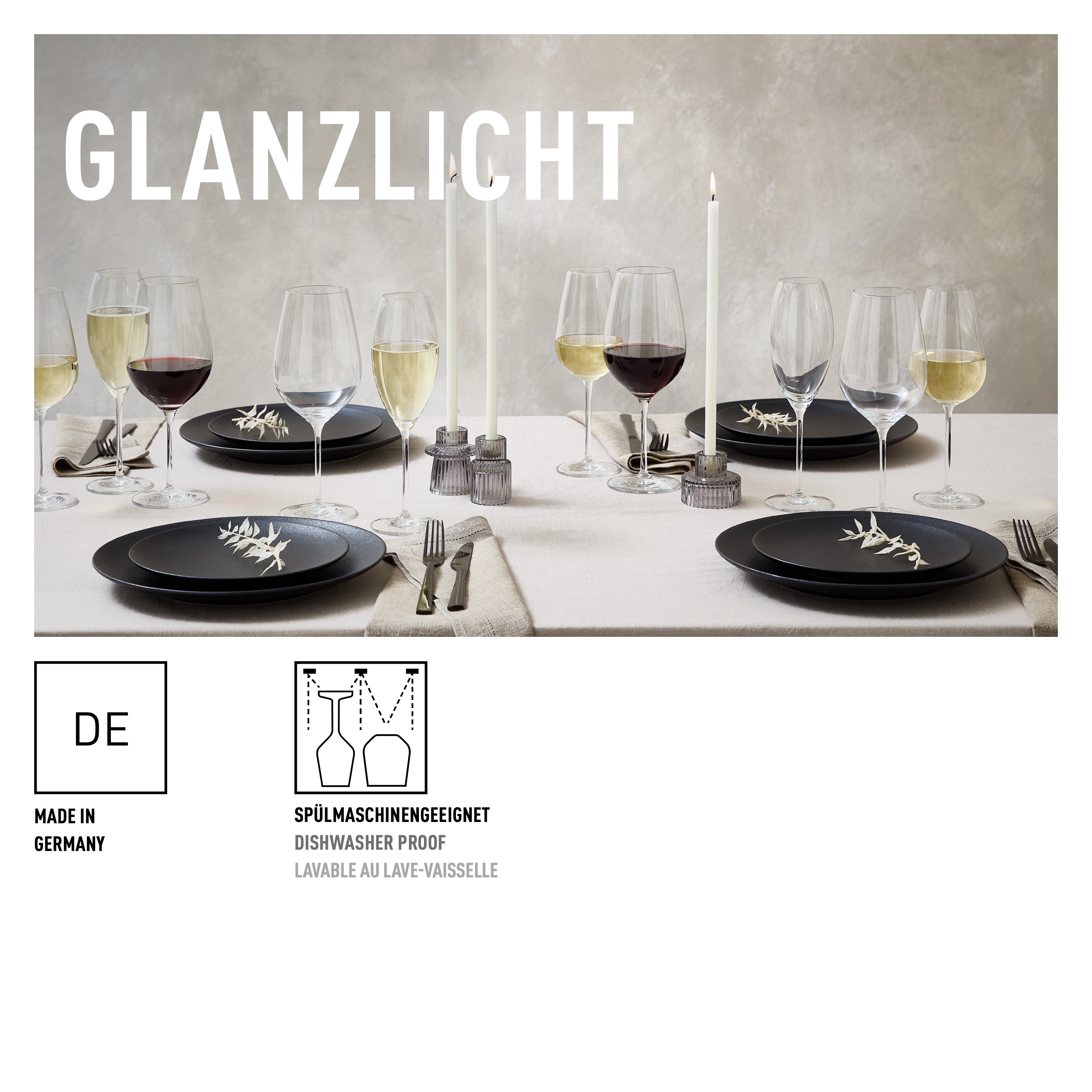 Glanzlicht steht für moderne Tischkultur. Mit einem schicken, minimalistischen Design bringen die Gläser eine Extraportion Glanz auf die Tafel.