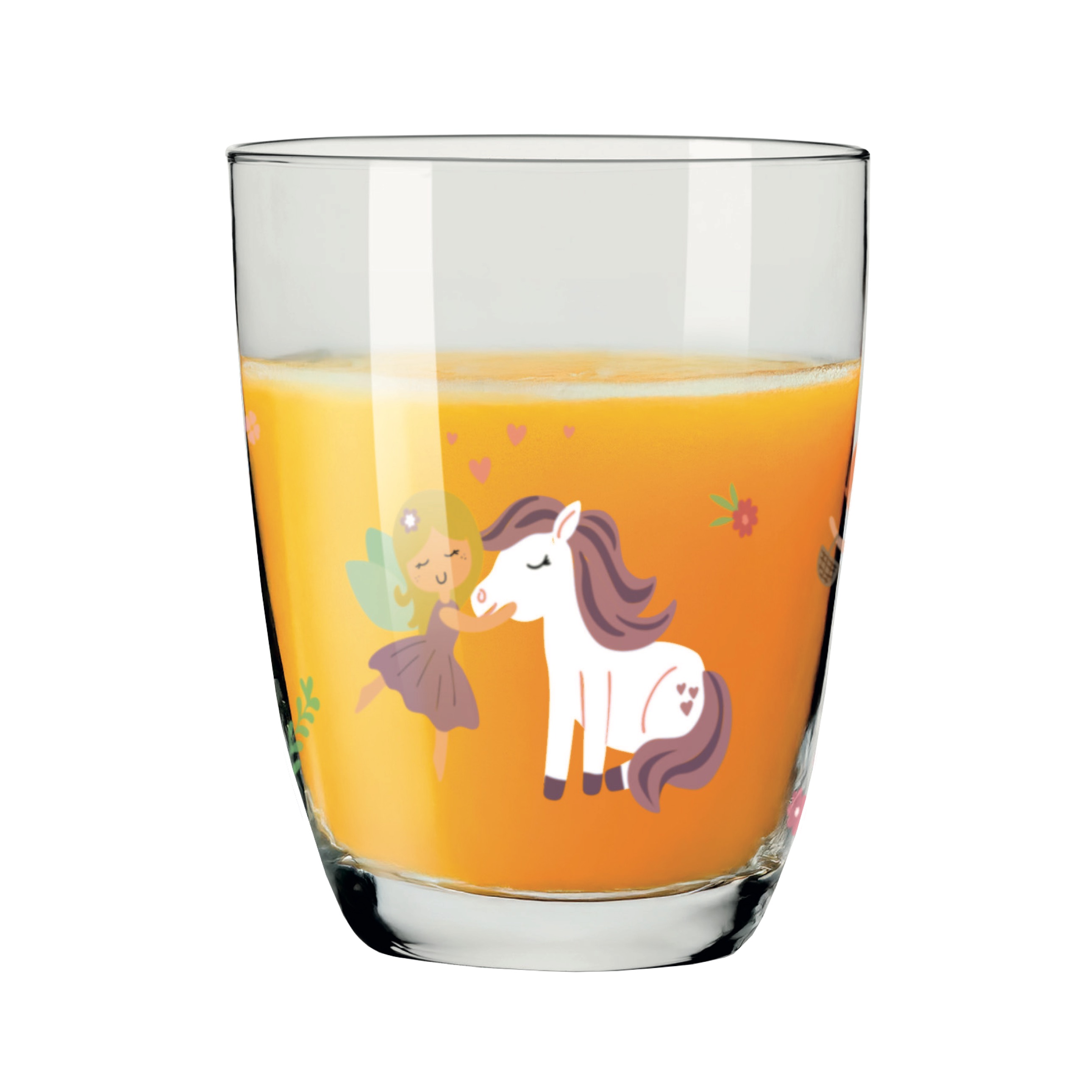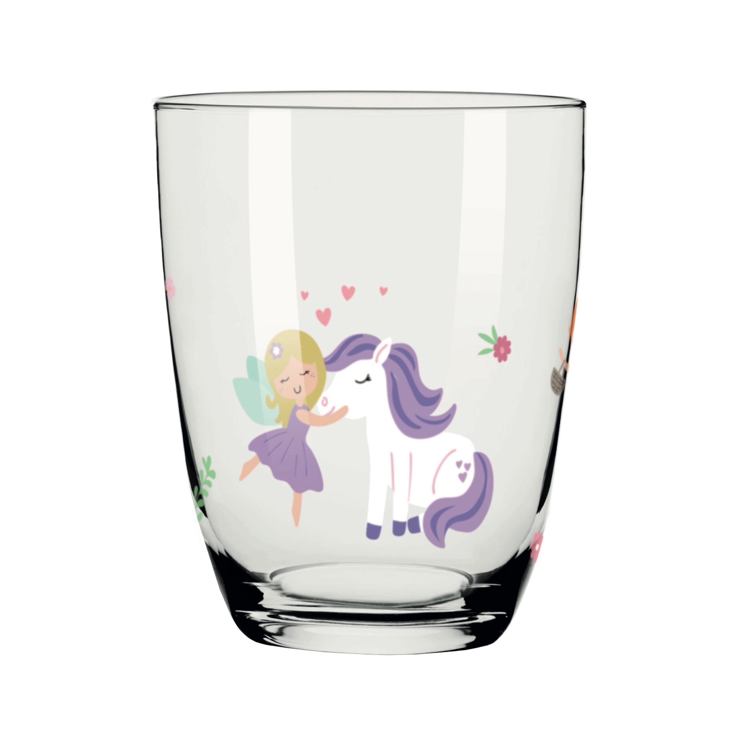 Magische Freundschaft zum Träumen: Eine kleine Fee und ihr Einhorn begegnen sich voller Zuneigung und versprühen märchenhaften Zauber. Sanfte Farben, kleine Herzdetails und das liebevolle Motiv machen dieses Glas besonders verspielt und kindgerecht.
