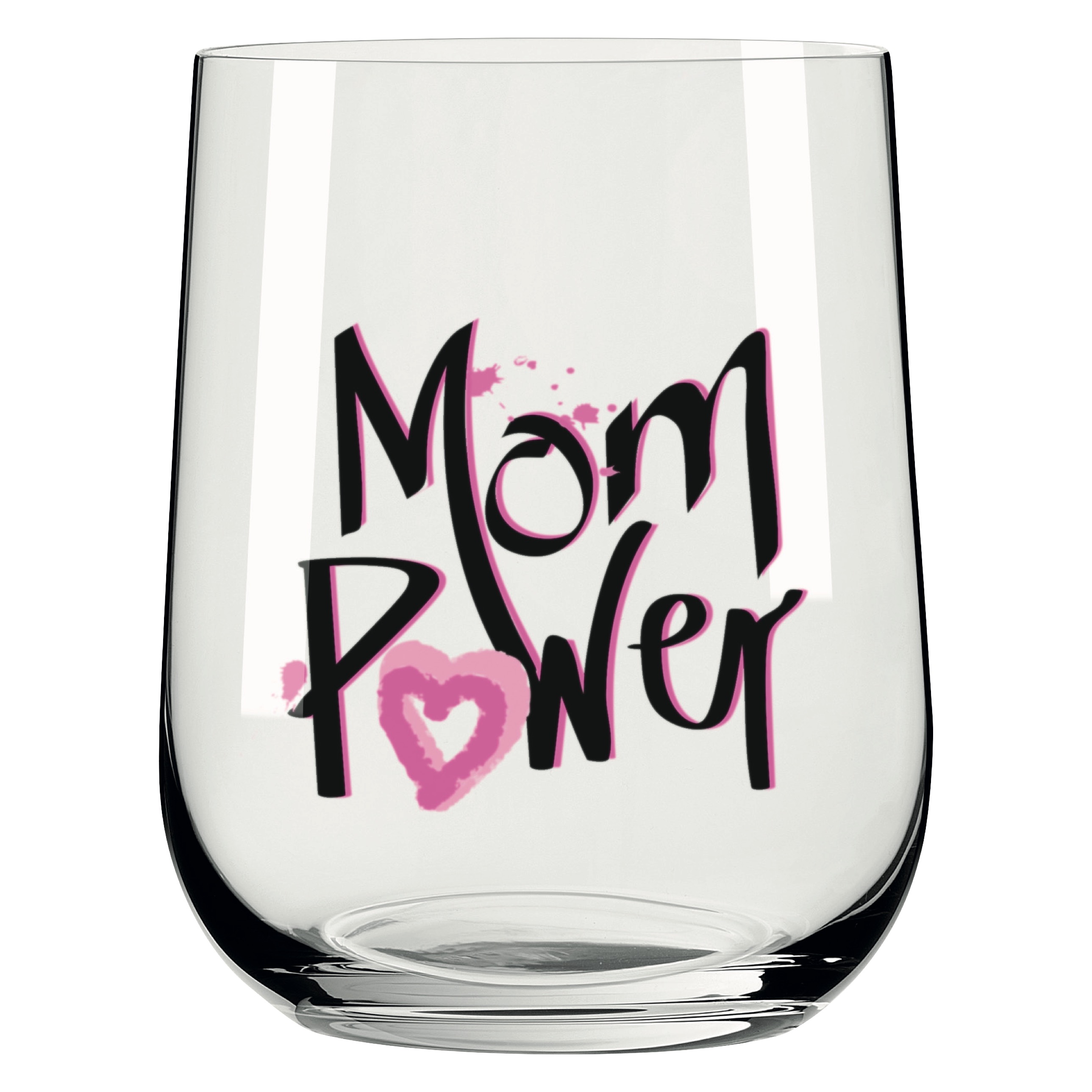 Kraftvoll und voller Gefühl setzt dieses Design ein klares Statement: Der markante Schriftzug ‚Mom Power‘ in Kombination mit einem Herzdetail steht für Stärke, Liebe und unermüdlichen Einsatz. Ein ausdrucksstarkes Glas, das Wertschätzung auf stilvolle Weise zeigt.