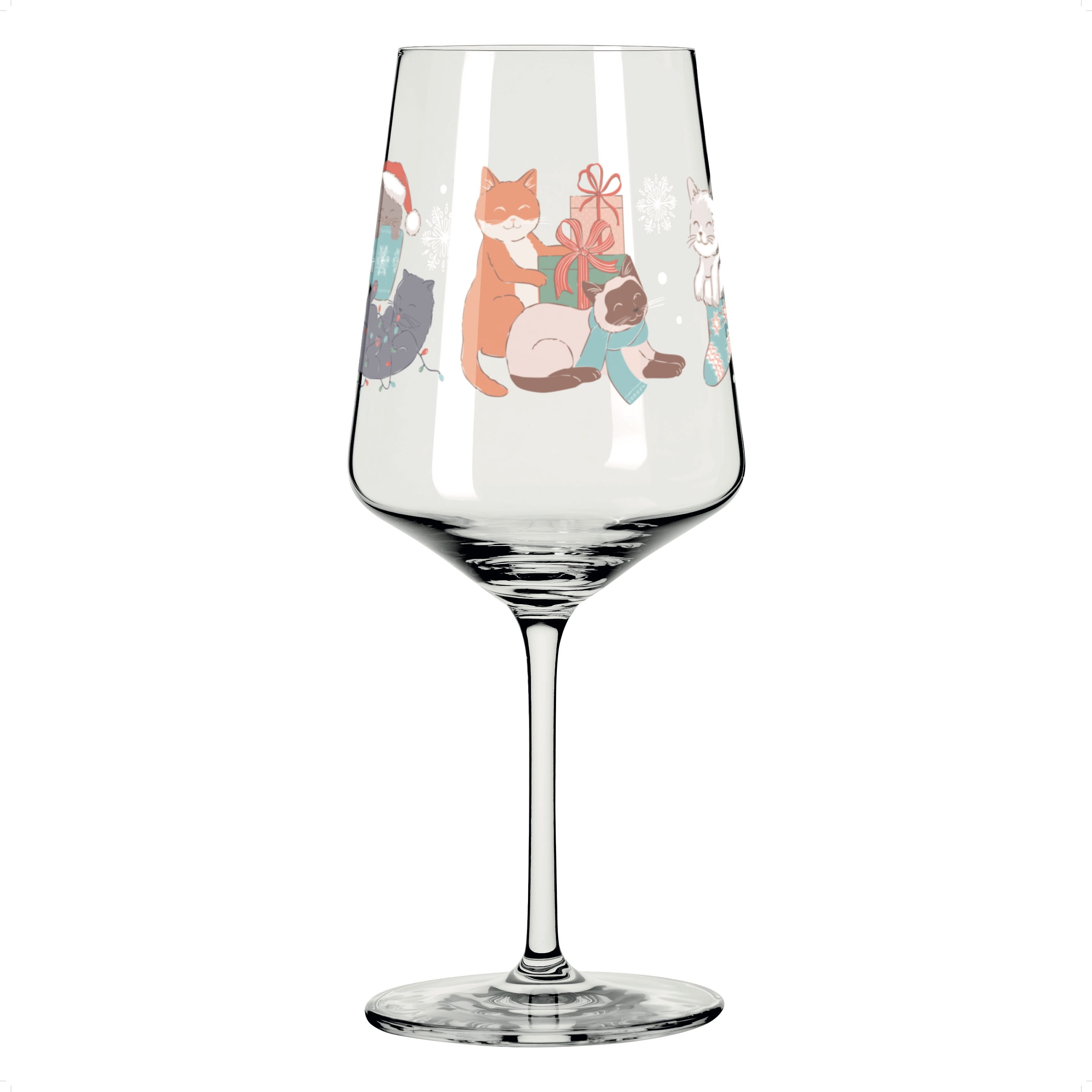 Samtpfoten, Schneeflocken und Weihnachtszauber - dieses Glas bringt festliche Stimmung ins Haus. Das Dekor macht jeden Schluck zu einem Wohlfühlmoment.